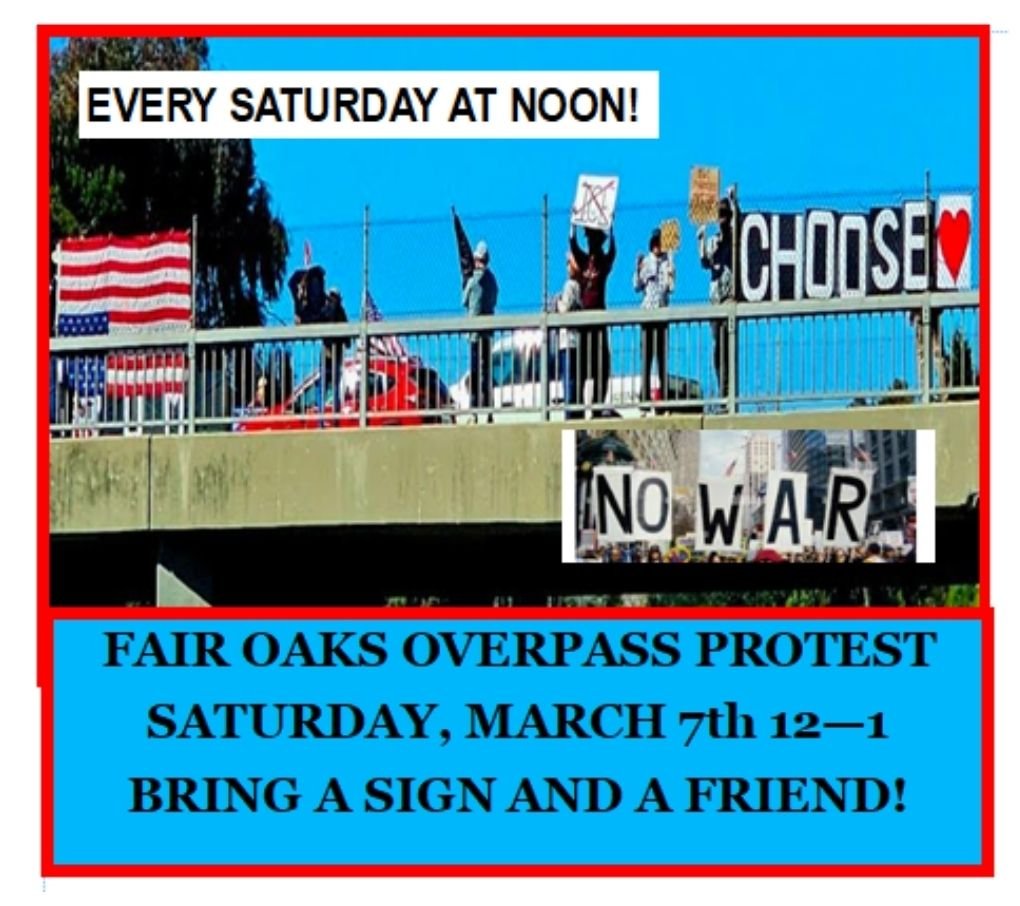 Fair Oaks Overpass Action Saturday, February 7, 2026 12:00 PM Saturday, February 28, 2026 1:00 PM Google Calendar ICS